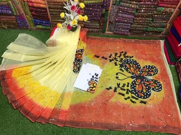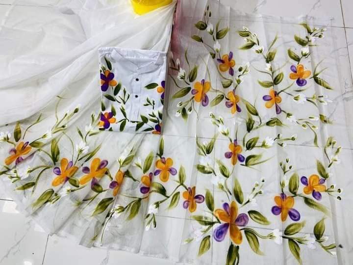 হ্যান্ড প্রিন্ট কাপল সেট শাড়ি হাফ সিল্ক পাঞ্জাবি হাফ সিল্ক ধুপিয়ান প্রাইস